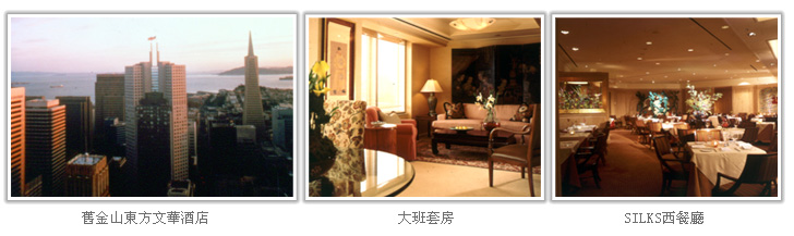 位於美國舊金山市區金融商業中心的文華東方大飯店,以擁有絕佳的景觀和專業化的服務聞名,1至3樓為旅館大廳及餐廳,36至48樓則為旅館客房,每個房間均有臨眺舊金山美景的極佳視野,近年來雖然先後歷經舊金山大地震、新興旅館的競爭與經濟蕭條的考驗,依然能夠屹立不搖並獲得殊榮,誠屬不易。